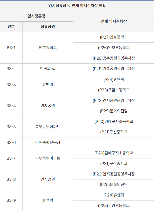 - 정류장 위치 확인: 각 셔틀버스의 정류장 위치는 김해종합운동장 주차장 상황이나 교통 상황에 따라 유동적으로 변동될 수 있으니, 대회 당일 정확한 정류장 위치를 확인하시기 바랍니다.