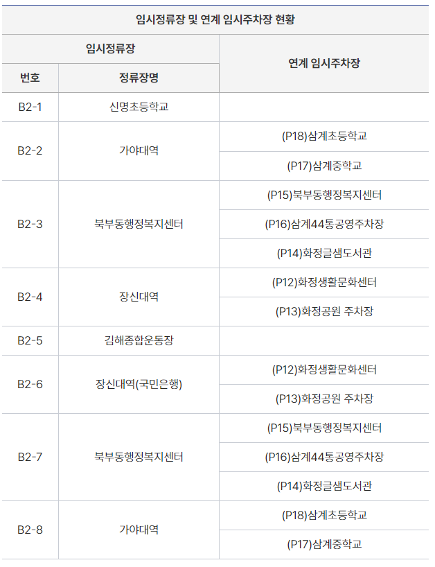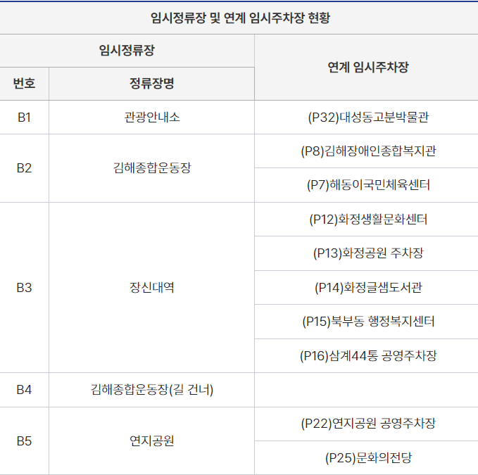 - 이용 팁: 가야대 인근에 주차 후 셔틀버스를 이용하면 주차 걱정 없이 편리하게 운동장까지 이동할 수 있습니다.