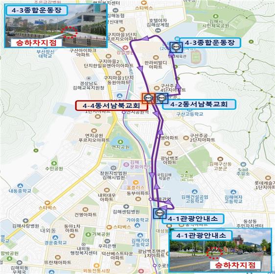 - 특징: 김해 북부 지역에서 출발하는 노선으로, 북부동 행정복지센터와 화정글샘도서관을 경유하여, 북부지역 주민들이 종합운동장까지 빠르게 이동할 수 있습니다.