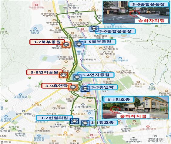 - 인제대역(P37) → 김해시청(P36) → 김해종합운동장