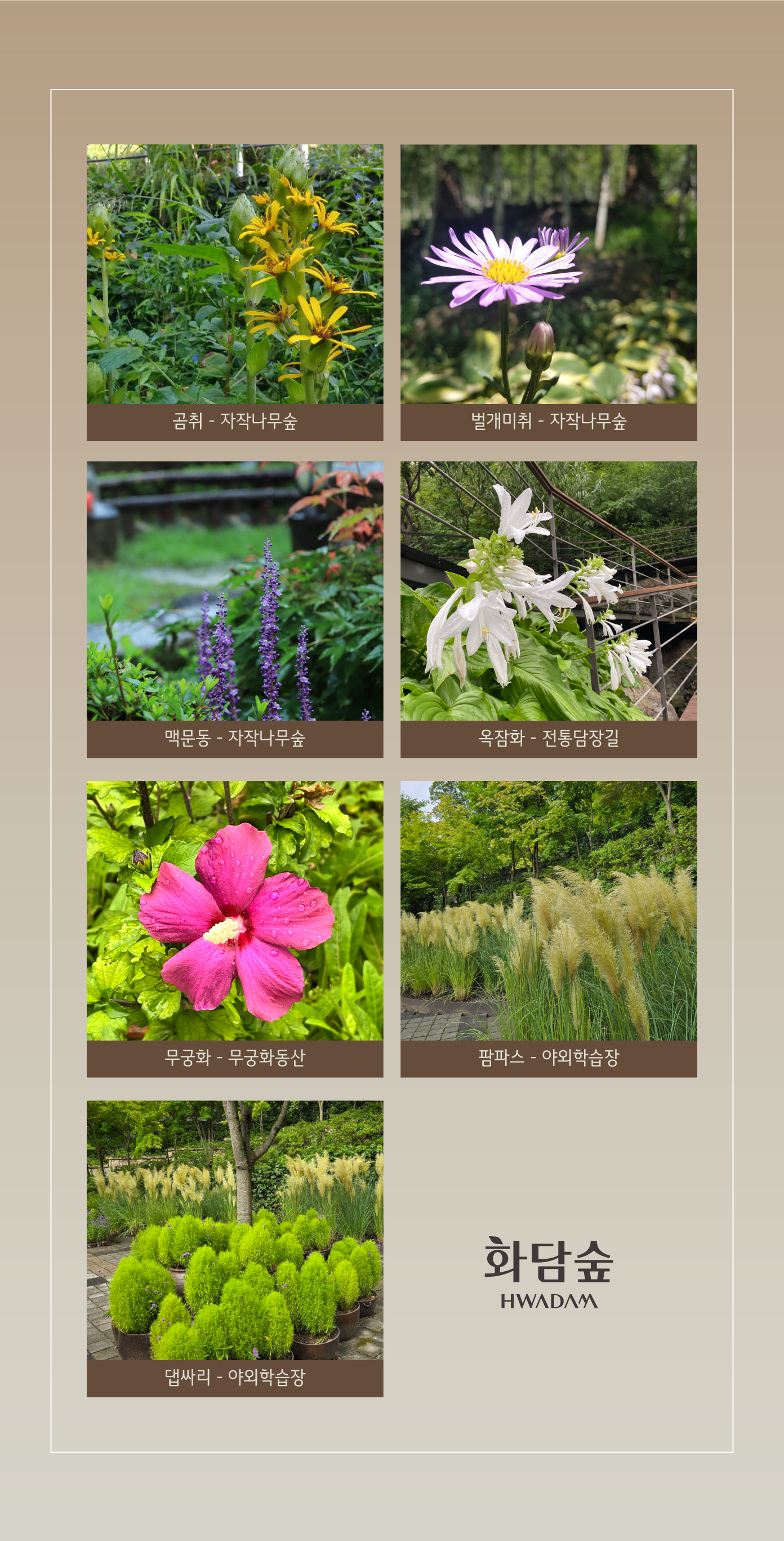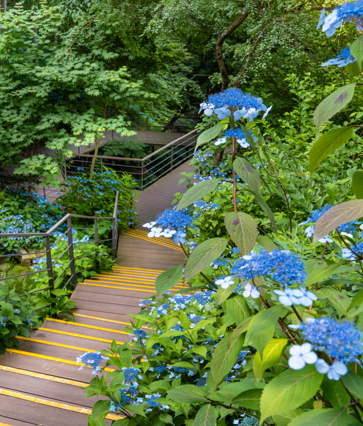 화담숲은 테마별로 나뉘어진 다양한 정원들이 있습니다. '단풍나무정원', '이끼정원', '야생화정원' 등이 그 예로, 각 정원마다 특색 있는 식물들이 식재되어 있어 산책로를 따라 자연을 감상하며 다양한 테마의 정원을 만날 수 있습니다.