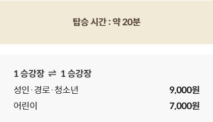 - 모노레일 운행 시간: 1승강장에서 출발해 3승강장까지 20분 간격으로 운행됩니다. 모노레일 탑승 전, 10분 전에 승강장에 도착해야 합니다.
